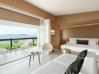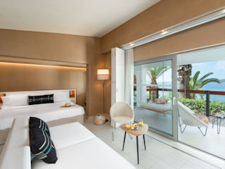 Elegant accommodation offering approx. 25 m² of indoor space with views overlooking the crystal-clear turquoise waters of Halkidiki and the resort surroundings. This accommodation offers a comfortable stay for 2 adults and a baby cot. In-room amenities include a Nespresso coffee machine, air conditioning, twin or double beds, Satellite TV, a safety deposit box, bathrobes and slippers, hairdryer and a mini bar.