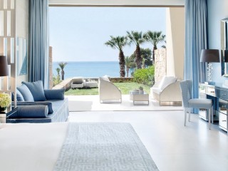 The brand new contemporary junior suite grand balcony offers breath-taking vistas over Aegean promising impressive 40 m2 open-plan interiors, a sitting corner and extended bathrooms, featuring freestanding bathtubs and separate rain showers, all of which adds up to an unrivalled guest experience. The spacious indoor space is complemented by a relaxing balcony with luxury furniture. While the spacious bathroom comes with all that's needed to rejuvenate including Anne Semonin exclusive amenities. Sea View.