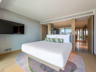 E Wow Private Pool Suite (207m²) can accommodate up to 3 people. They feature a terrace with sun loungers, dining table, infinity pool and indoor jacuzzi tube, bathroom with bath or shower and separate toilet. Rooms include flat screen TV, WiFi, safety deposit box, coffee and tea making facilities, mini bar, air conditioning, bathrobe and slippers, hairdryer, Bang & Olufsen speaker and Ipod docking station and daily room cleaning service and towel change.